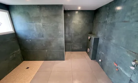 Delmon Daniel, entreprise de pose de carrelage de salle de bain à Dax, transforme vos espaces en véritables pièces de bien-être. Spécialistes en conseil en aménagement de salle de bain, nous réalisons des designs élégants et modernes avec des carreaux mosaïques, faïences ou formats chevron. Nous sommes aussi experts en pose de carrelage sur carrelage, idéal pour moderniser votre salle de bain sans travaux lourds.