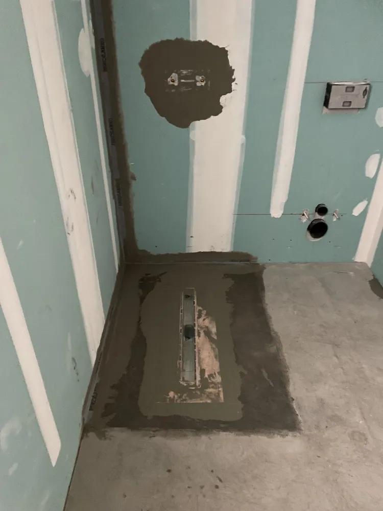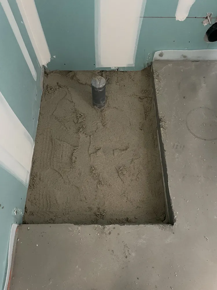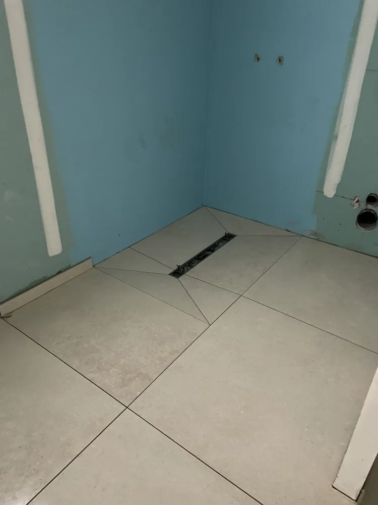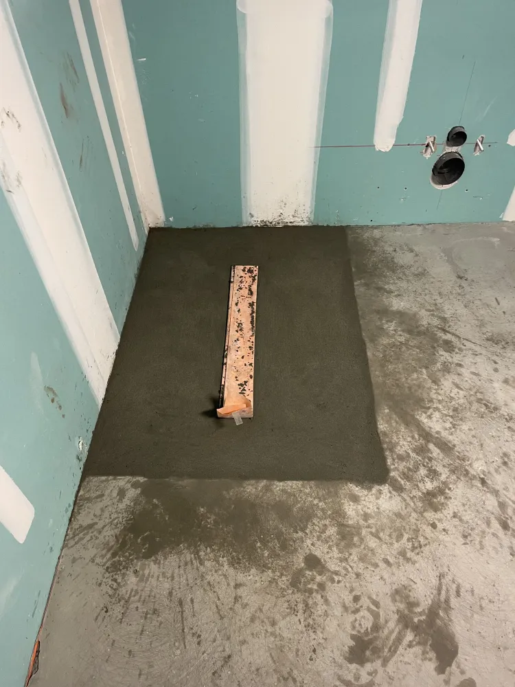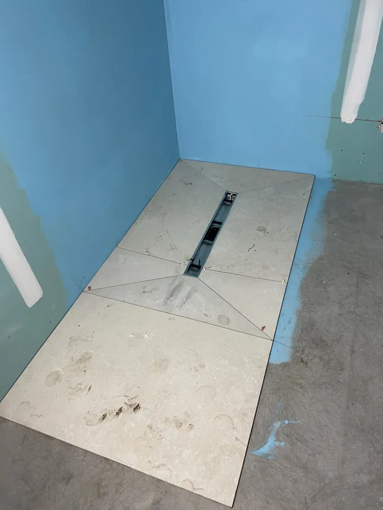 À l’aide d’un mortier hydrofuge, il façonne les pentes nécessaires (généralement entre 1 et 2 %). Ce travail demande précision et expérience, car un dénivelé trop faible provoquerait des stagnations d’eau, tandis qu’un excès rendrait la douche inconfortable.
