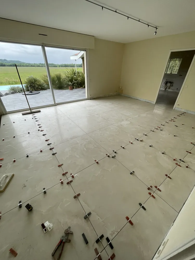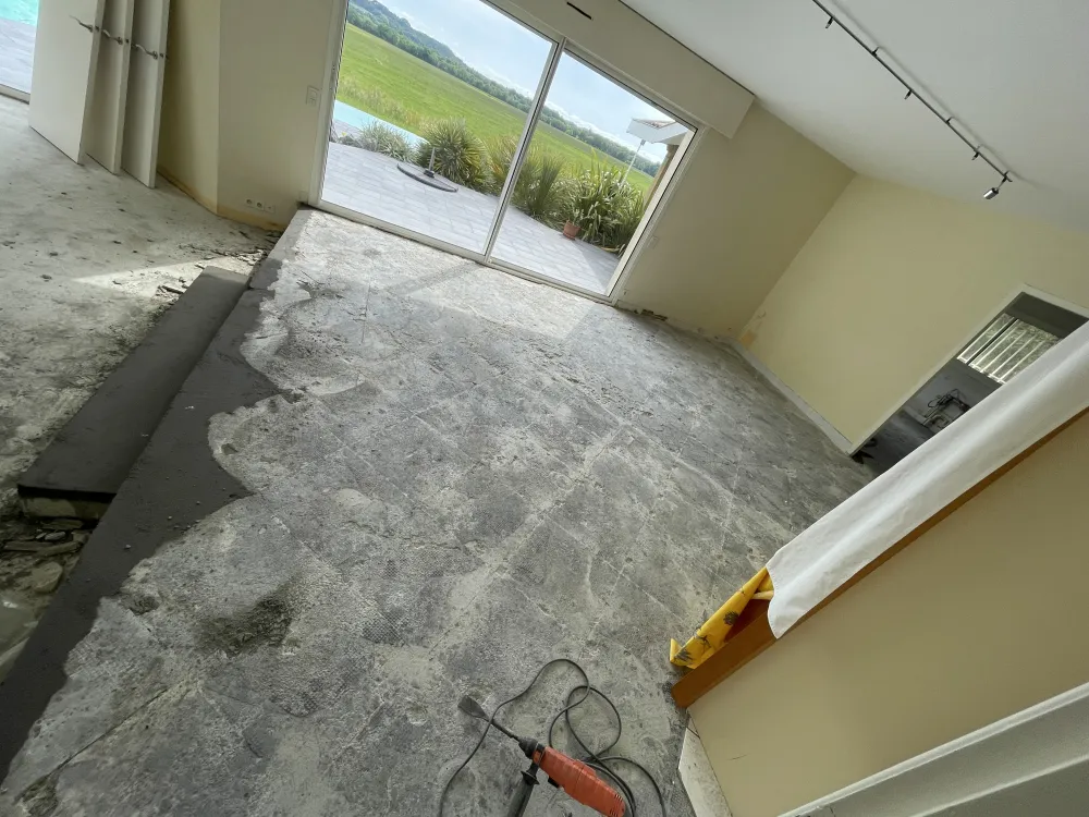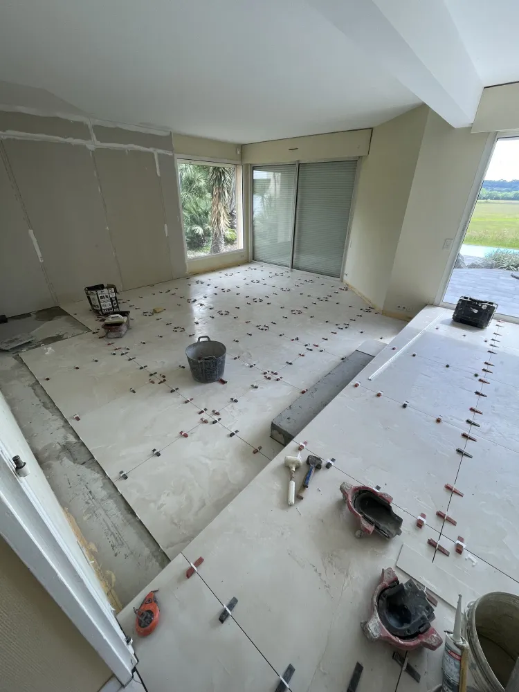 Dans le cadre d’un chantier de rénovation de sol, Daniel Delmon, artisan carreleur reconnu pour son savoir-faire et son exigence du détail, est récemment intervenu pour la réalisation d’un ragréage dans une maison individuelle située à Rivière.